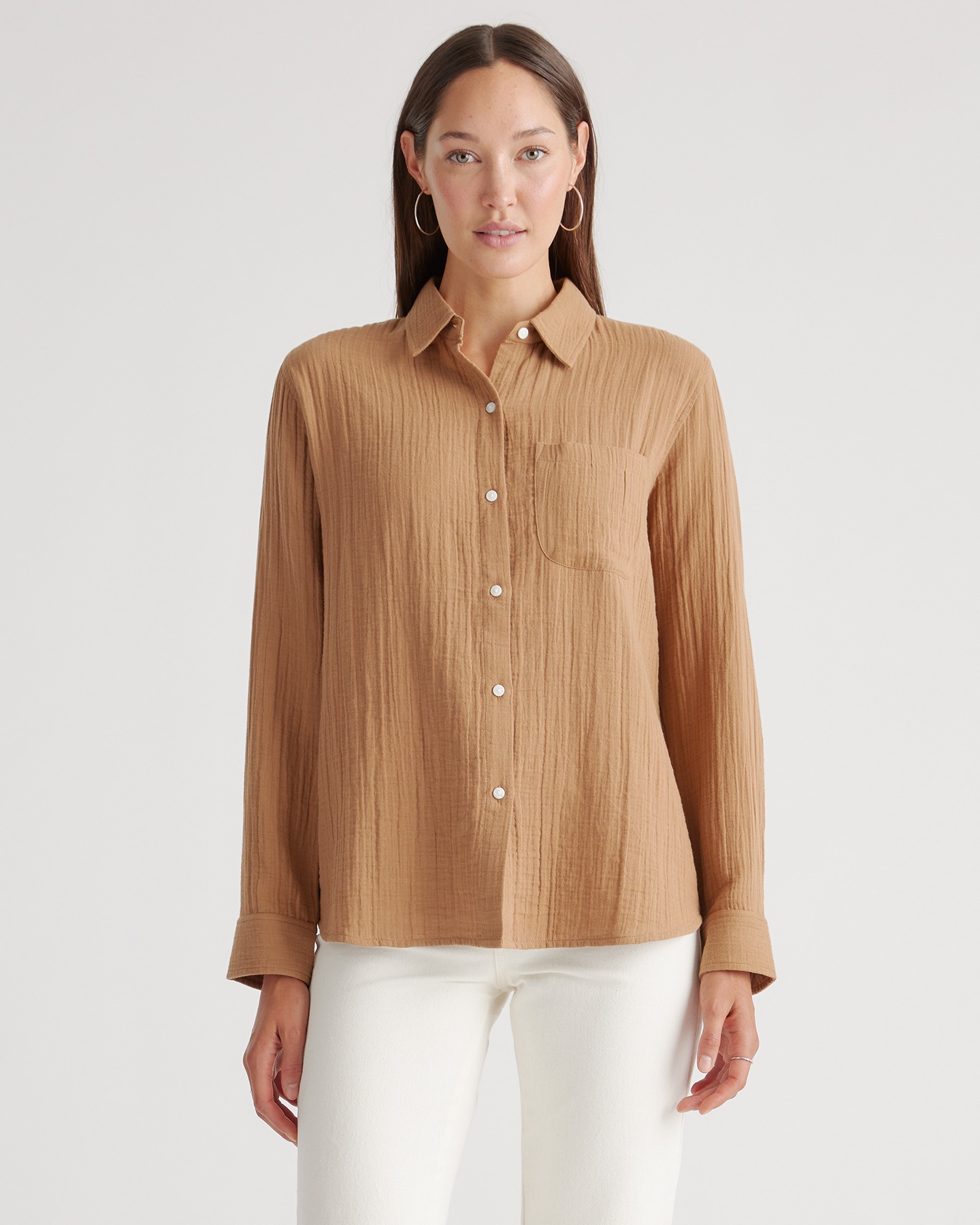 Stow away that stuffy button-down. Our Organic Cotton Gauze Long Sleeve Shirt does it all, this versatile shirt can take you from the office to days at the beach. Made of our premium organic cotton gauze, it’s soft and breathable with subtle texture.