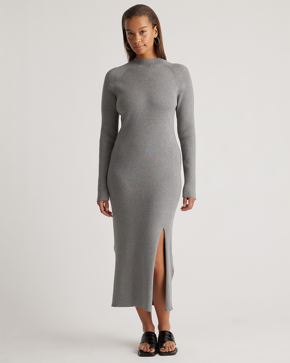 Eco-Knit Ribbed Mock Neck Sweater Dress