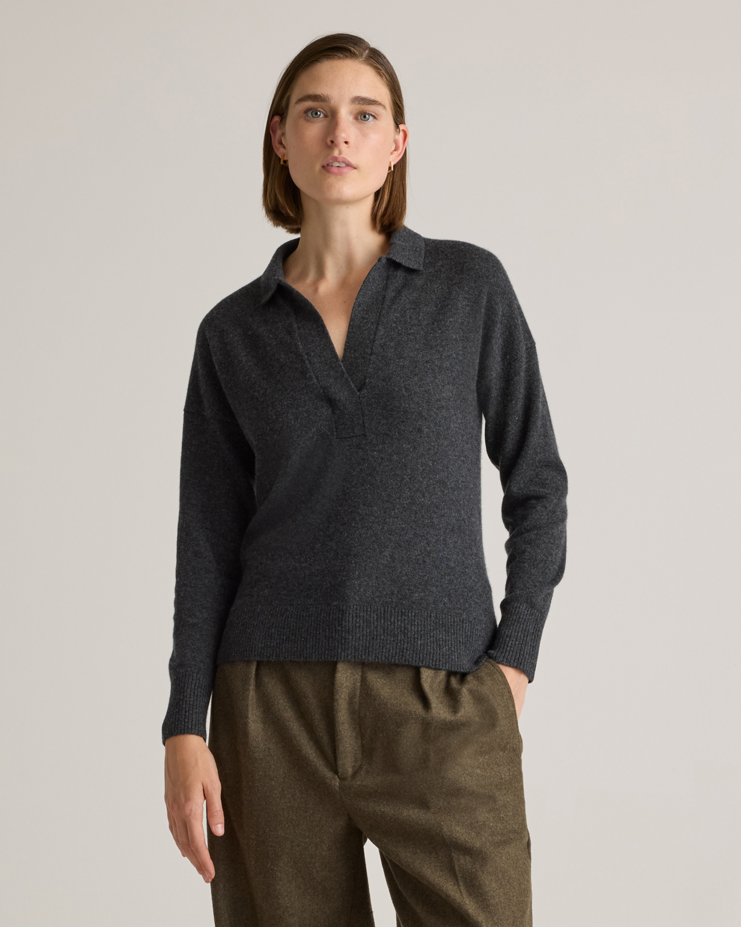 Our best-selling cashmere in another timeless style: the polo sweater. Made of 100% Mongolian cashmere (of course), in a relaxed fit, with an open polo collar for a casual-luxe look.