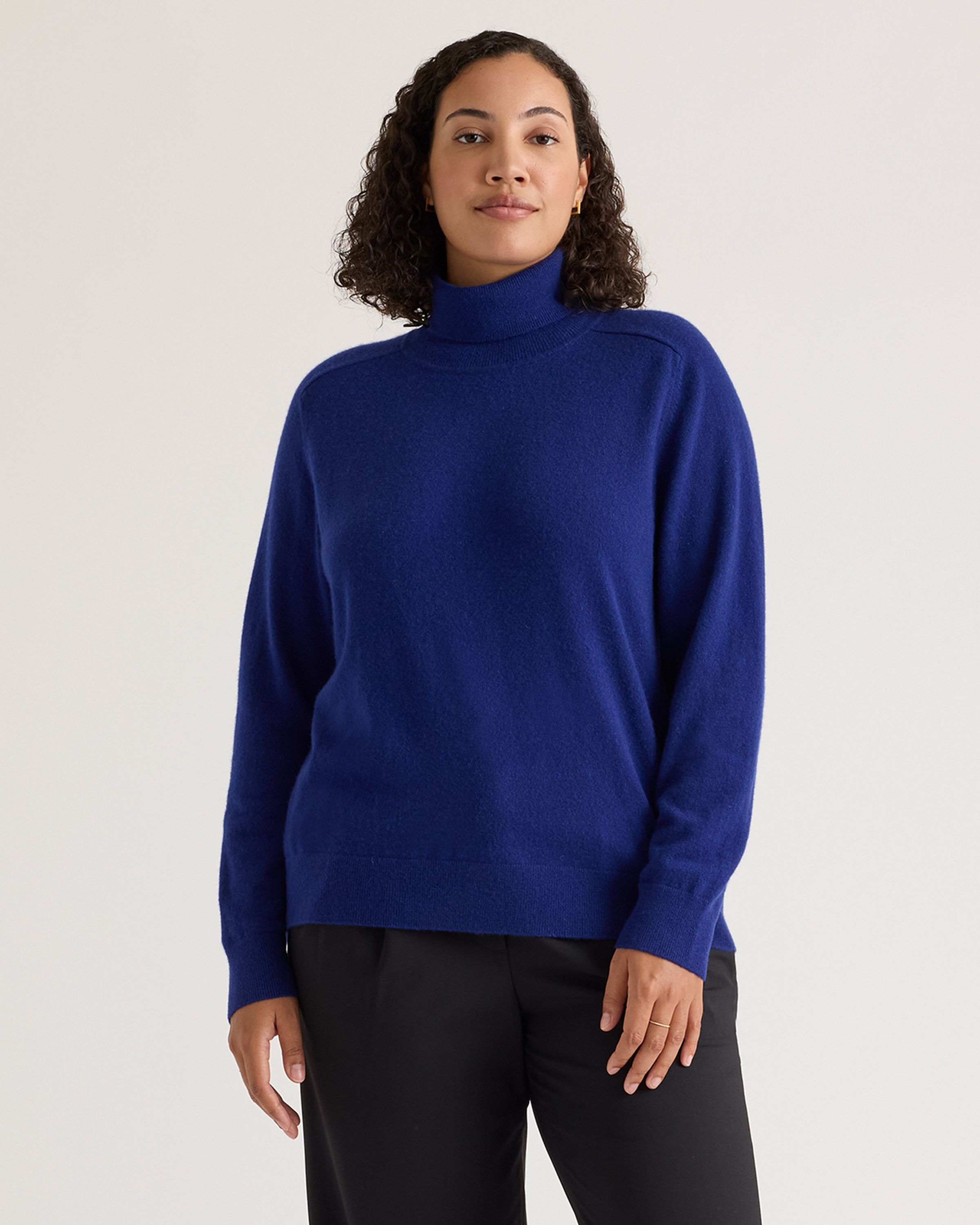 The classic cashmere turtleneck sweater. Our Mongolian cashmere turtleneck sweater has a relaxed fit but luxurious feel. It’s timeless, and never goes out of style. Our quality cashmere is incredibly long-lasting and three times as warm as wool, sourced sustainably and ethically. Read more on what makes it special in our Cashmere 101.