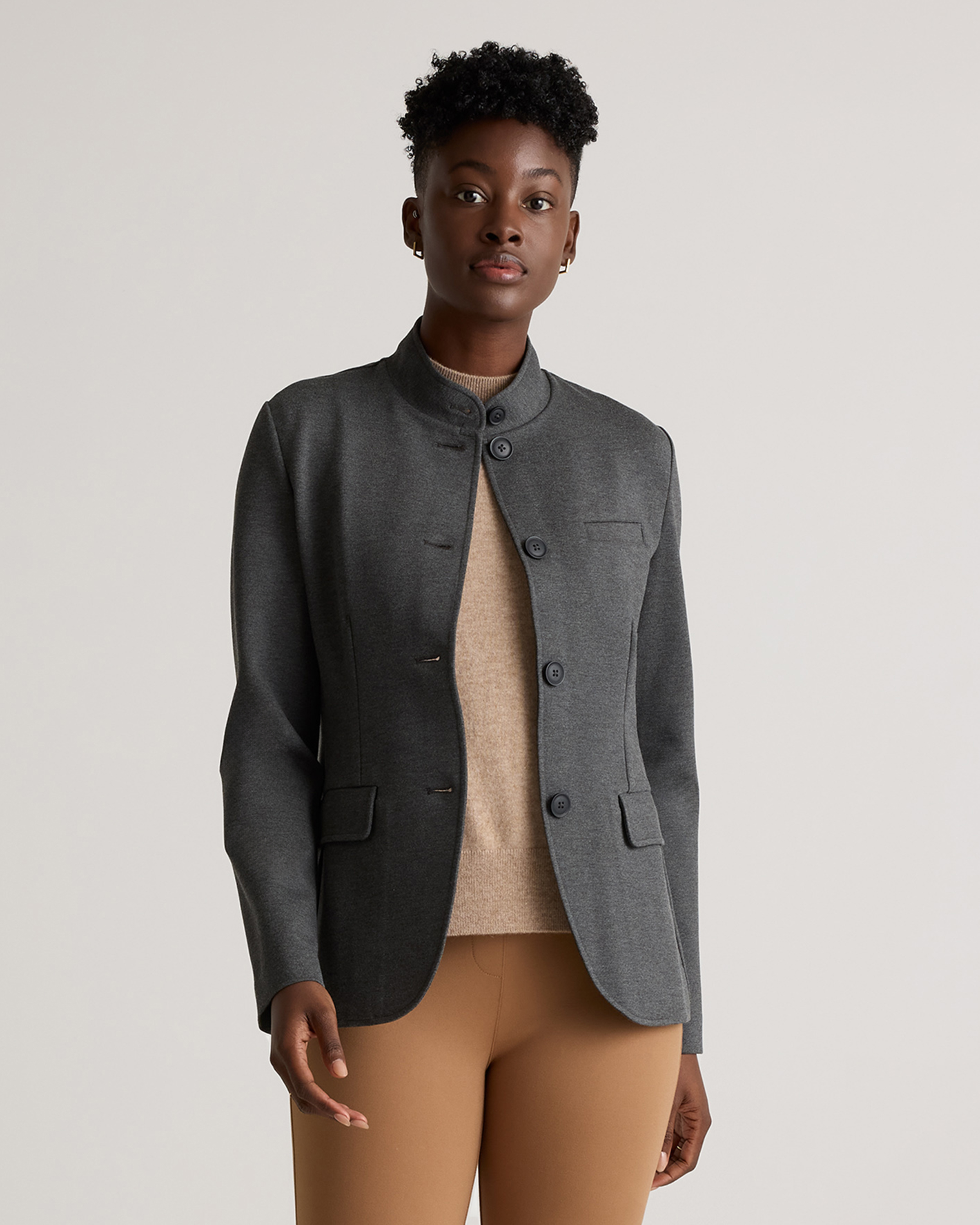 A spin on your classic blazer with our Ultra-Stretch Ponte Stand Collar Blazer. Made from high-quality double knit ponte fabric, it’s stretchy but still polished. Featuring a single-breasted button-front closure, practical pockets, and a stand collar, this tailored fit complements both formal and smart-casual outfits. Pair it with any of our ponte bottoms for a complete look.